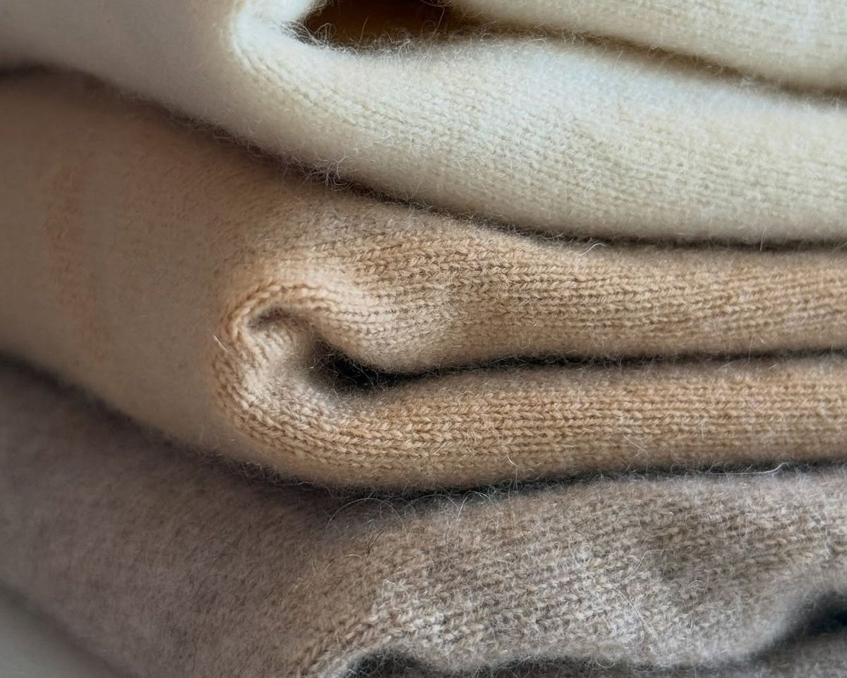 Sourced for its exceptional softness and warmth, our cashmere represents quiet luxury at its finest. Carefully selected fibers ensure a refined feel, natural insulation, and lasting comfort.