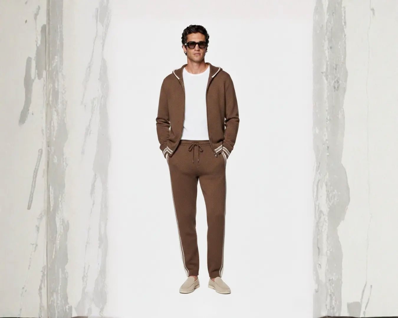 Crafted from an exquisite blend of cashmere and fine merino wool, this men’s loungewear set offers exceptional softness and refined warmth. Thoughtfully tailored, the jacket and trousers form a calm, modern silhouette — finished with meticulous craftsmanship for a timeless expression of understated luxury.