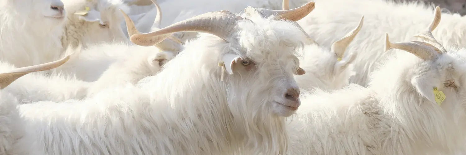 Cashmere originates from the fine underfleece of the Capra Hircus goat. During the cold winters, the goats naturally grow an insulating layer of exceptionally fine fibres to protect themselves from harsh climates.